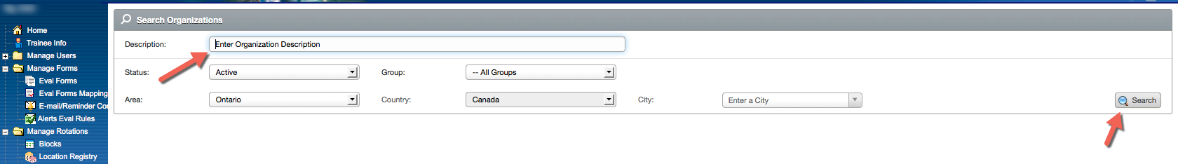 The Location Registry menu option displays all the locations available to be used in the POWER system. This list is a central list that is managed by the University of Toronto’s Discovery Commons Department and is also accessible by the Faculty of Medicine’s Undergraduate Medical Education office via their Registration and Evaluation system called MedSIS. The University of Toronto’s Office of Integrated Medical Education (OIME) also has access to this database via their community preceptor payment system called T-IME.