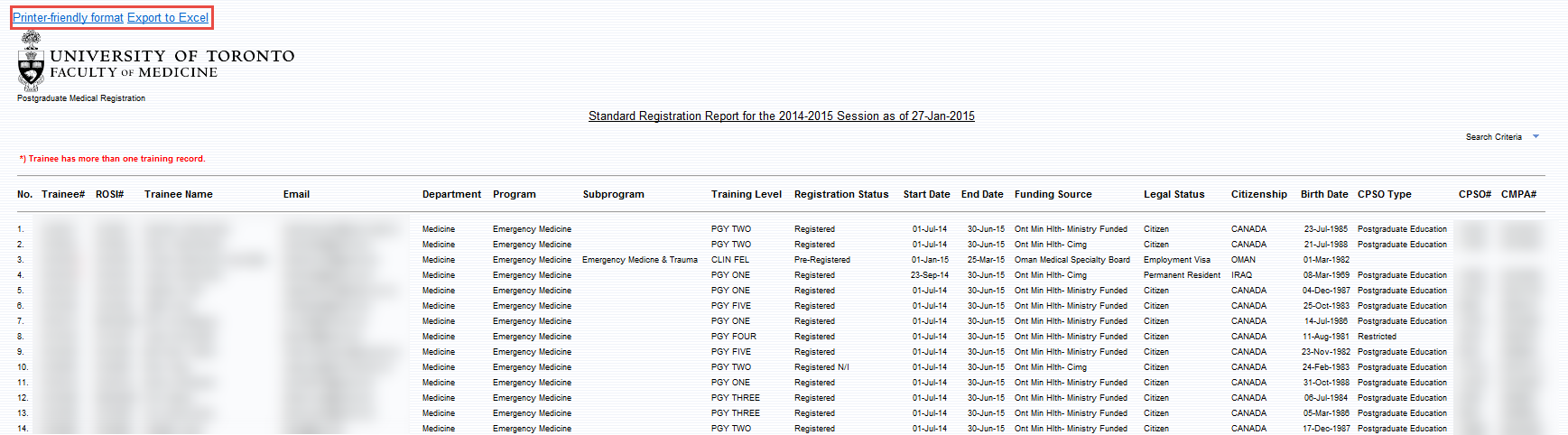 The Standard Registration menu option displays some registration information of each of your Learners. This report is found via Reports, Standard Regn menu option.