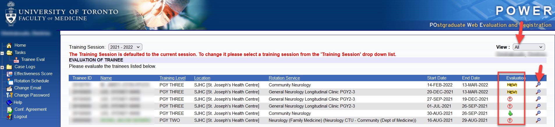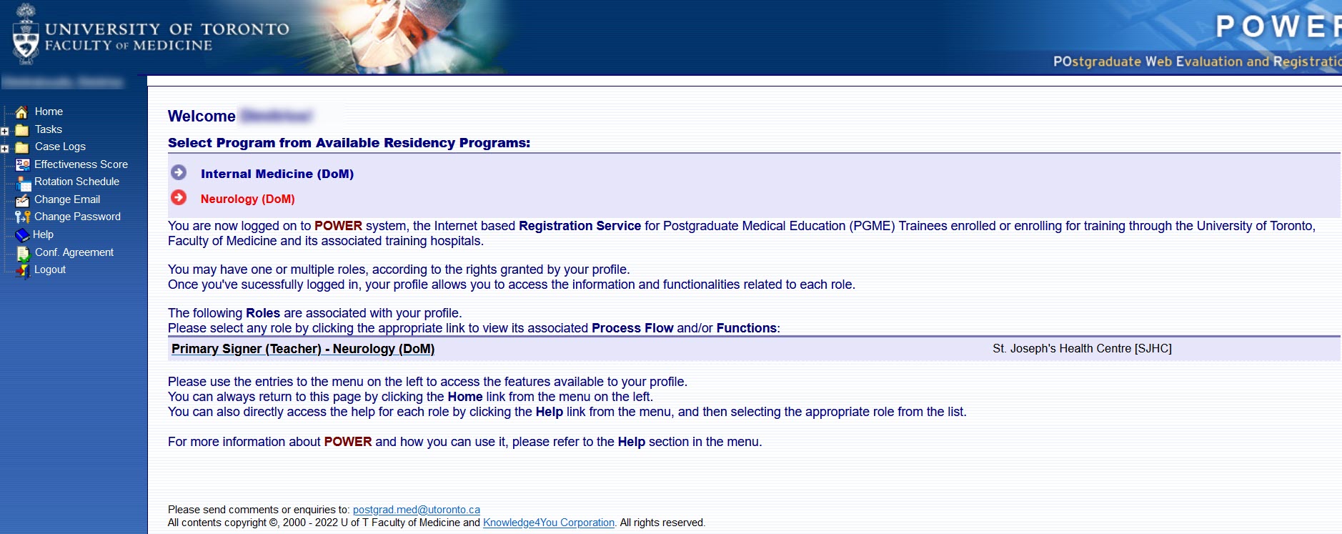 Program administrators manage their respective learners rotation schedules and teacher assignments in POWER. Thus for any missing/incorrect trainee evaluations contact the program administrator or the PGME POWER Helpdesk for assistance.