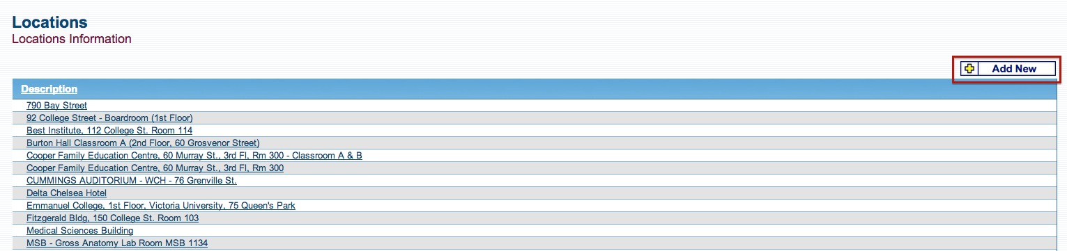 Locations are managed centrally. To add a new location, or to get assistance with this function please contact the help desk.