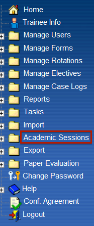 To access Academic Sessions in POWER, select “Academic Sessions” from the main menu.
