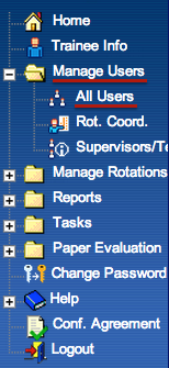 Teachers are normally given the Trainee Eval function only. If the program uses Case Logs then this function would also be selected.