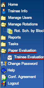 To access the paper evaluation function, from the menu options click “Paper Evaluation” and then “Trainee Evaluation“.